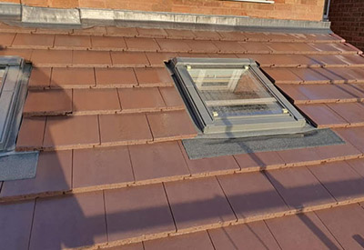 Smooth brown Marley modern tiles and 3 velux windows supplied and installed by dosthill roofing in four oaks