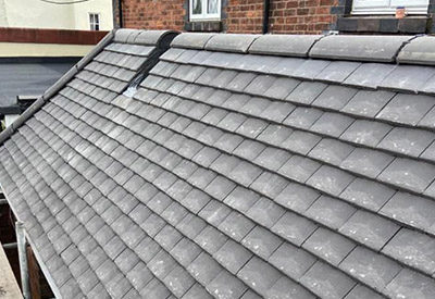New timber traditional cut mansard roof with a grey concrete tile and dry ridge system