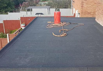 Flat roof strip off and re boarded in Tamworth. Built up 3 layer felt roof completed with a neat and tidy finish, leaving a very satisfied customer. 20 year guarantee